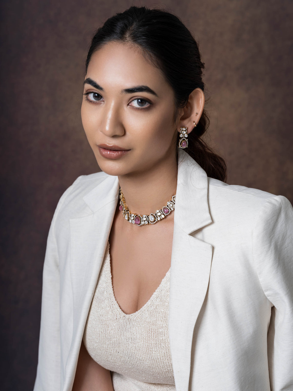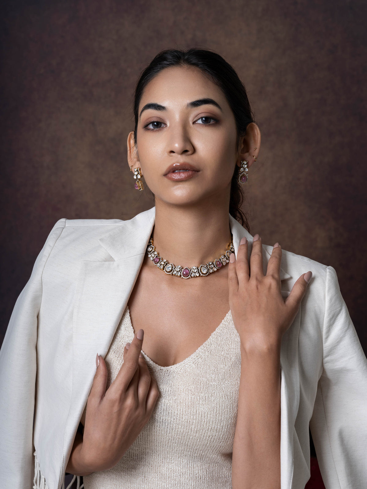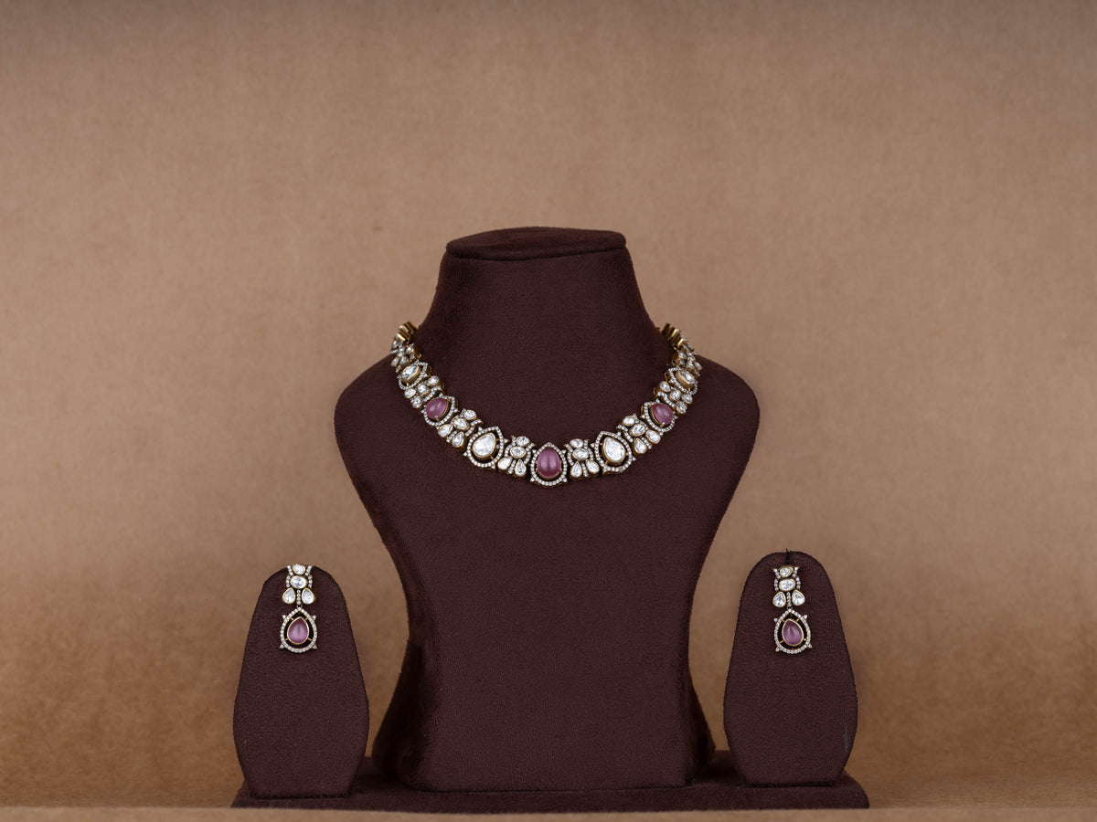 Nyra, Elegant Eyecatching Polki Silver Necklace Set
