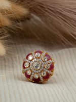 92.5 Silver Adjustable Ring with Moissanite Polki & Freshwater Pearls – Gold Plated
